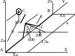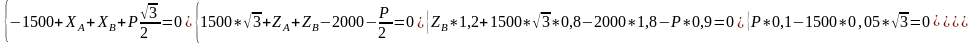Для нахождения искомых величин, которых, как видно из конструкции, четыре: XA, XB, ZB, ZA – запишем систему из 5 уравнений, характеризующих условия равновесия механизма: