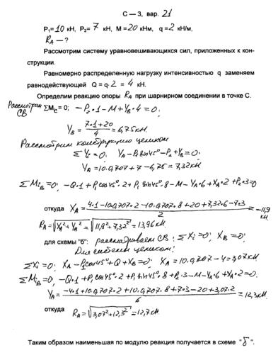 Получилось, что реакция опоры ZA – отрицательна. Это означает, что на рисунке она должна быть направлена в другую сторону. Решение для модулей выглядит следующим образом: