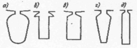 Двигатели с фазным ротором предназначены для привода механизмов, требующих плавного регулирования частоты вращения вниз от номинальной, а также механизмов с особо тяжелыми условиями пуска. В серии А2 двигатели с фазным ротором выпускались начиная с габарита 4 и выше, а в серии 4А выпускают, начиная с высоты оси вращения 160 мм и выше. В серии А2 обмотка роторов всыпная из круглого провода, многовитковая из прямоугольного провода и стержневая. В серии 4А обмотка выполняется всыпной или стержневой. Пазы под обмотку показаны на рис. 8-1.