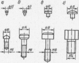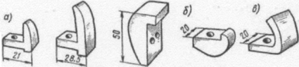 Контакты (рис. 16-1) в виде заклепок (а), винтов (б), болтов (в) и гаек (г) изготовляют обточкой на токарных, токарно-револьверных или токарно-винторезных станках. Профили новых контактов контакторов и контроллеров (рис. 16-2) для плавного перекатывания контакта должны строго соответствовать профилю поверхности сменяемого контакта.
