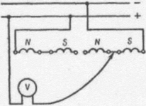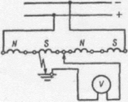 Рис. 10-3. Схема для нахождения обрыва в обмотке полюсов