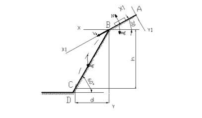 К раме ABCD, закрепленной при помощи стержней на шарнирах, приложены: масса G, сила Q. Для нахождения реакций опор твердого тела нужно найти силу, действующую на стержни, крепящие раму ABCD. Обозначим их как