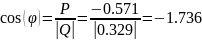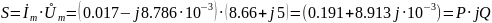 m= (8.66+j5) · (-0.033+j0.057) = (-0.571+j0.329) = P + jQ