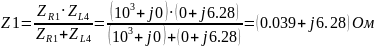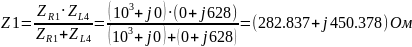 2.1 Розрахунок комплексного опору Z1, як паралельне з`єднання елементів R1 та L4 і відповідно паралельне з`єднання комплексних опорів ZR1 та ZL4 :