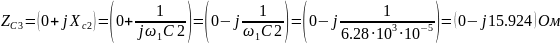 2.2 Розрахунок комплексного опору Z2, як послідовне з`єднання елементів Z1 та C3 і відповідно паралельне з`єднання комплексних опорів ZC3 та Z1: