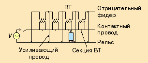| Переменного тока с отсасывающими трансформаторами (ВТ) | |