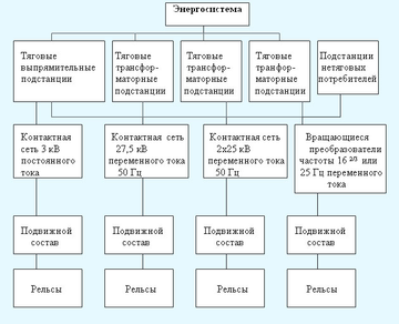 Рис.4. Блок-схема системы электроснабжения электрифицированных железных дорог.