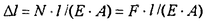 По формуле Гука, учитывая, что продольная сила во всех поперечных сечениях штанги одинакова (N=F), имеем: