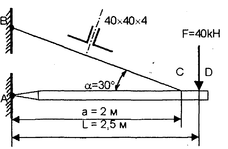 где: площадь поперечного сечения одного равнобокого уголка 40×40×4, А1 = 3,08 см2 (по табл. ГОСТ 8509-86). Площадь сечения тяги А = 2А1.