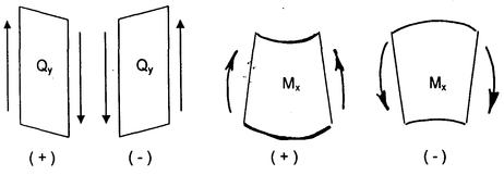 Поперечные силы считаются положительными, если они стремятся повернуть элемент бруса по часовой стрелке.