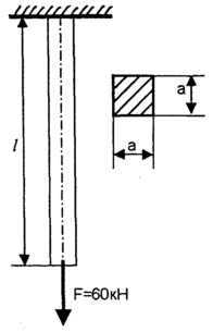 Определить размеры поперечного сечения стальной (Е=2,1 1О5мПа) штанги (длина l= 2,5м) при условии, чтобы её удлинение равнялось [Δl]= 2мм. Чему при этом будут равны напряжения в поперечном сечении штанги?