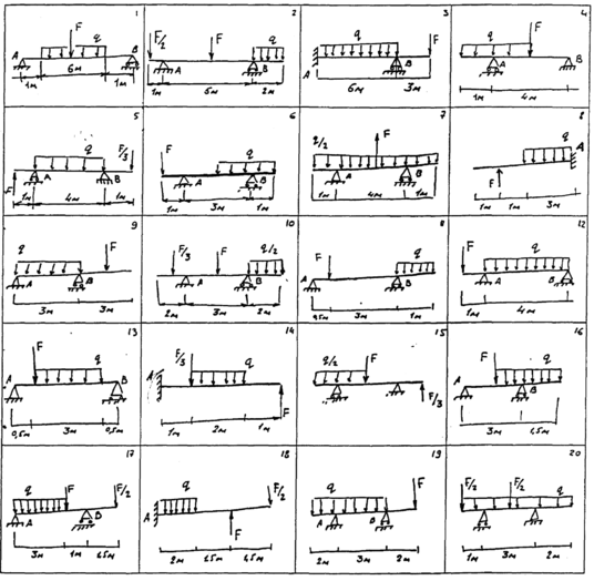 Расчетно-графические работы предусмотрены в объеме 5-10 рукописных листов пояснительной и расчетной записки и 1 листа формата А3 графической части, на которой изображаются все расчетные схемы к задачам с указанием направления действия сил и т.д. (желательно в цветном исполнении).