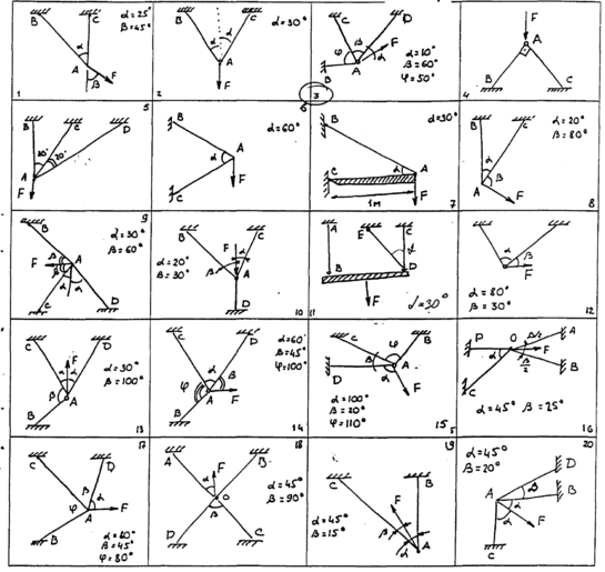 Проверить прочность стержней, если они нагружены силой F=40kH. Стержни изготовлены из дюраля одинакового сечения D=25мм. Допускаемое напряжение [σ]=75МПа. Условия соответствуют рисункам задачи №1.