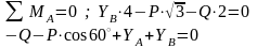 Ma(fr)=0 ; Ma+M-4P*cos45-3Q=0