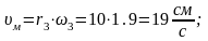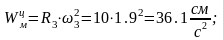 Скорость точки М, её вращательное, центростремительное и полное ускорения определяются по формулам: