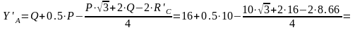 Yа= P*cos45+Q-Rc*cos45=7+4-14=3кН