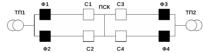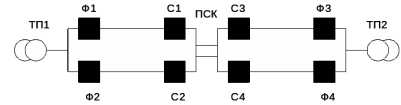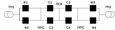 Между ПСК и ТП включёны дополнительно пост параллельного соединения (ППС), который электрически соединяет КС обеих путей.