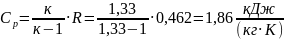 Удельная изобарная теплоемкость газа при к = 1,33