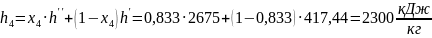 | 4 | 1 | 100 | 373 | 63,5 | 1,416 | 2300 | 2159 | 6,3 | Влажный насыщенный пар х4 = 0,933 |