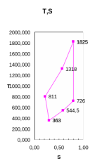2.Sχ2=Cp*ln(Tχ2/273)-R(Pχ2/1,013)=1,01*ln(1275,5/273)-0,287* *ln(35,20/1,013)= 0,659