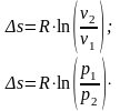 Для вычисления изменения энтропии для термодинамических процессов (кроме адиабатного) используют логарифмические зависимости. В адиабатном процессе изменения состояния газа, в котором