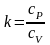 Массовые изобарная и изохорная теплоёмкости (кДж/(кг·К)) определяется по формуле: