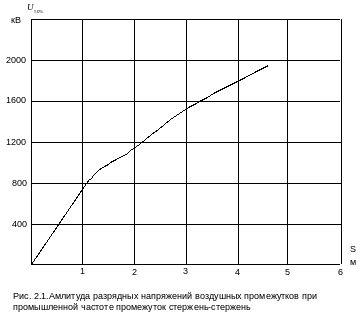 Примечание. Разрядные напряжение, определённое по формулам, таблицам и графикам, следует привести к реальным атмосферным условиям (указанным в таблице 3.4).