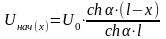 В начале обмотки (х = 0) напряжение равно приложенному (u = U0). В конце обмотки (х = l) при заземлённой нейтрали напряжение равно нулю (u = 0), а при изолированной нейтрали нулю равен ток.