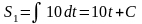 Найдем константу С. S (0) =0=10·0+C → C=0, S1=10t