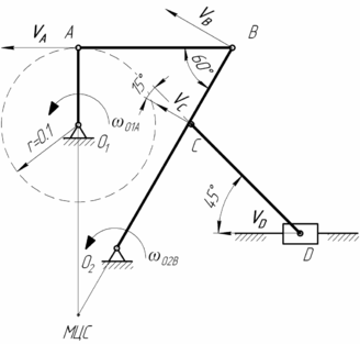 VA=ωO1A·r/2=6·0,1=0,6 м. с (VA┴O1A)