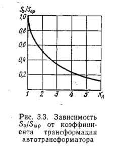 т. е. величина мощности Sэ обратно пропорциональна коэффициенту трансформации автотрансформатора kA.