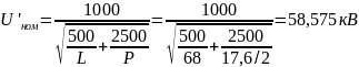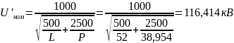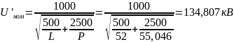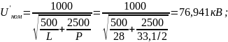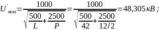 Далее, с помощью формулы Илларионова, определяем целесообразную величину номинального напряжения на участке 1-2: