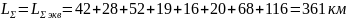 Длина линий, приведенная в экономическом соотношении к одноцепному исчислению: