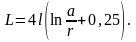 Первый случай — оба проводника принадлежат к одной системе. Индуктивность системы из двух параллельных проводников радиусом r и длиной l, находящихся на расстоянии а, при условии, что l >> а, определяется формулой