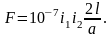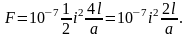 Значение силы притяжения может быть определено из следующих соображений. Заменим ферромагнитную массу вторым проводником с током того же направления, расположенным на таком же расстоянии от границы раздела сред. Картина поля при этом не нарушится, так как одновременно с удвоением длины магнитной силовой линии удвоилась и магнитодвижущая сила (2i вместо i), т.е. такая замена вполне правомерна. Силы взаимодействия между двумя параллельными проводниками подсчитываются по уравнениям (19) и (20). Только в данном случае вместо расстояния а надо брать 2а, т.е.