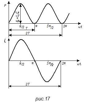 Т.е. сила меняется с частотой, в два раза большей частоты тока (рис. 17).