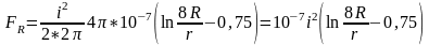 В кольцевом витке (рис. 10) с током i возникают радиальные силы fR, стремящиеся увеличить его периметр, т.е. разорвать виток. Если считать, что сечение проводника не деформируется, то согласно выражению (13) общая радиальная сила, действующая на виток, будет
