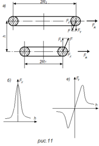 где c = R2-R1; R2> R1. Зависимости Fx и Fy от расстояния между витками представлены на рис. 11, б и в.