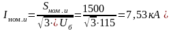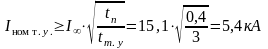где Iном т.у – номинальный ток термоустойчивости, кА;