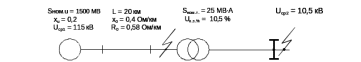 Для точки к-2 базисное напряжение Uб2=10,5кВ.