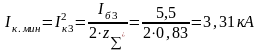При расчете режима двухфазного КЗ расчетное сопротивление цепи может быть получено путем удвоения расчетного сопротивления, вычисленного для трехфазного КЗ в конце кабельной линии. Это связано с тем, что эквивалентное сопротивление схем прямой и обратной последовательности можно считать одинаковыми.