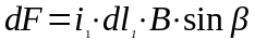 - угол между направлением тока и вектором индукции.