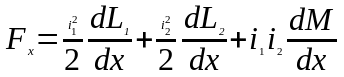 а электродинамическая сила между двумя взаимосвязанными контурами с токами i1 и i2