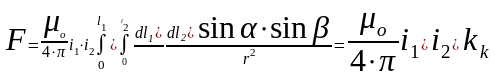 -магнитная проницаемость вакуума равная 4 10-7 Гн/м; -угол между током i2 и лучом r.