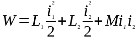 Электромагнитная энергия двух контуров, обтекаемых токами i1 и i2
