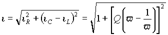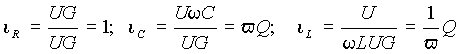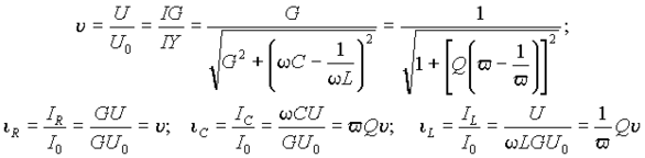 Отсюда, напряжение на входе в режиме резонанса U0 = I/G . Тогда ток в контуре - I=U0G. Перейдем к относительным единицам в выражениях (16) и (18), приняв в качестве базовых значений напряжение на входе при резонансе и ток контура, выраженный через это напряжение. Тогда получим