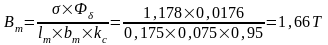 Индукция в сердечнике полюса при kс = 0,95 ((2-27),[1]);