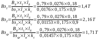Определим индукцию в зубцах при kс = 0,9 – коэффициенте заполнения пакета якоря сталью;