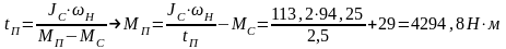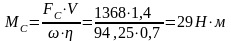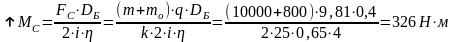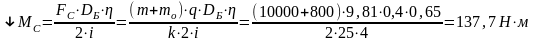 Учитывая изменение силы сопротивления FC двумя подвижными блоками, т.е. коэффициент блоков к=4, определим величину статического момента сопротивления при подъеме и опускании номинального груза: