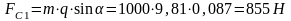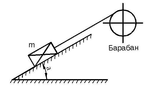 Определяем силу, необходимую для подъема массы m по наклонной плоскости: